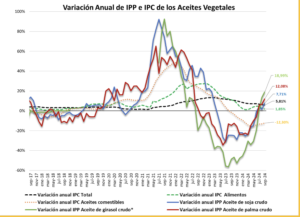 EL ACEITE CRUDO DE GIRASOL PRESENTÓ EL MAYOR AUMENTO DE PRECIO PARA EL PRODUCTOR, MIENTRAS QUE PARA EL CONSUMIDOR FINAL LOS ACEITES COMESTIBLES AÚN SE MANTIENEN A LA BAJA (-12,3 %)